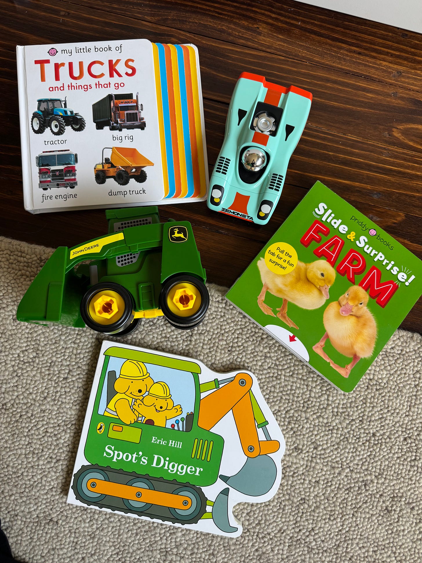 Seren’s Easter haul was substantial this year. He’s still not having chocolate, I figure we may as well delay it a long as we can. So family bought him a bunch of toys and books and clothes which is super generous. Simon’s Mum got him a Purebaby top (I’d) we’d been coveting, and my Mum and Dad went crazy with various cars and trucks. Seren’s current fixation is on this truck book (pictured below), and my Dad bought him a copy to have at their house too so now I cannot ever escape the countless requests. I was going to like do a TikTok taking a photo every time I had to read the stupid thing in a day but as with most things I didn’t follow through. Let’s just say it is a lot. It’s not even a story he just wants to point to each car or truck and have me tell him what they’re called. I think it’s good for him to develop his language but man it’s repetitive and dull!